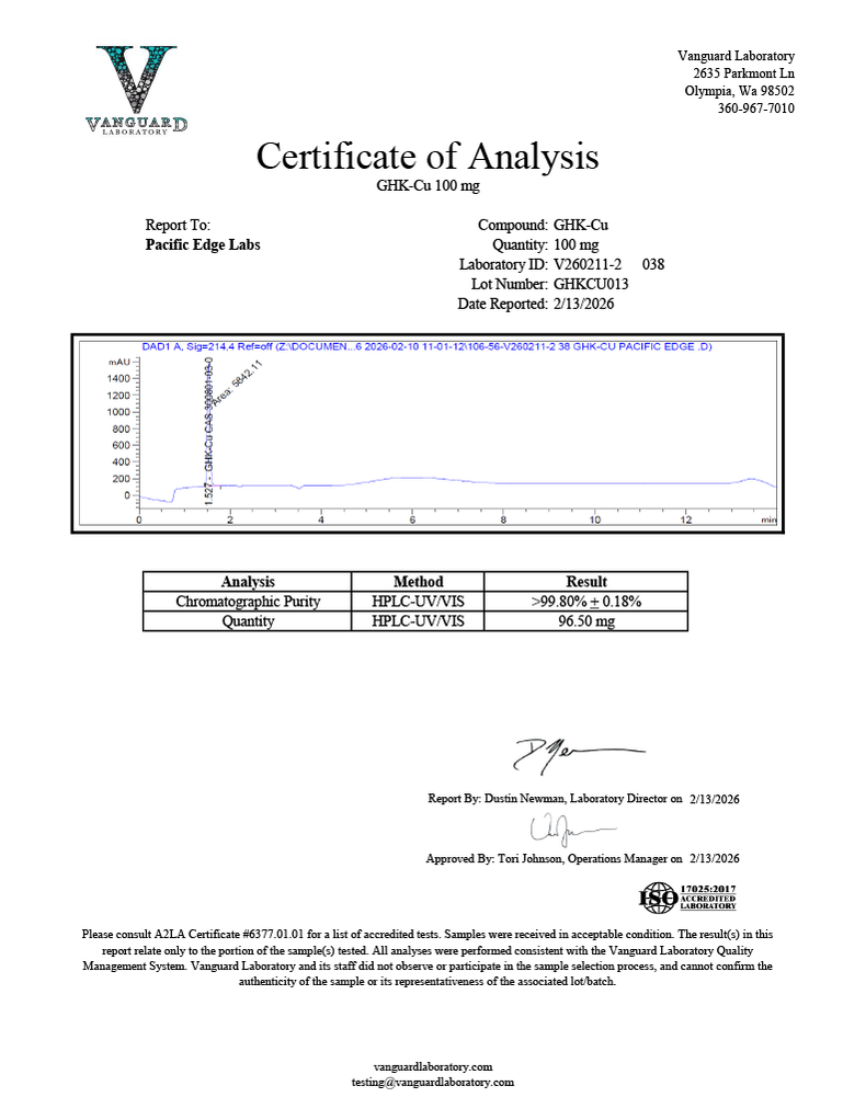 Because of its naturally occurring origin, extensive research history, and multifunctional biological activity, GHK-Cu remains a cornerstone compound for laboratories conducting advanced studies in tissue remodeling, regenerative signaling, and peptide–metal interactions.